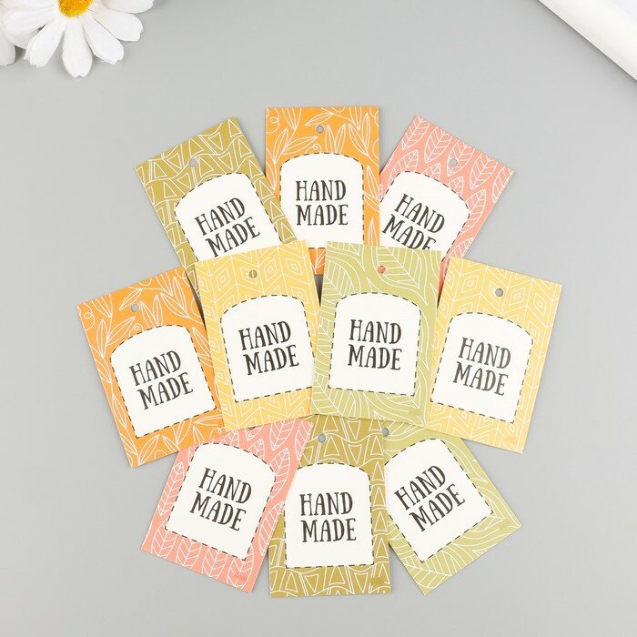 Бирка картон "Хенд мэйд", набор 10 шт (5 видов) 4х6 см информация: