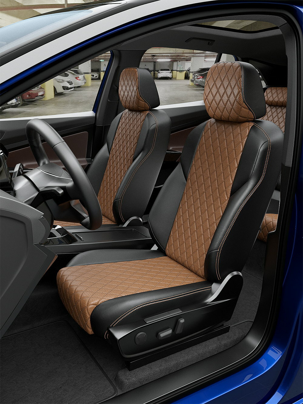 10 цен на Чехлы для Ниссан Кашкай 2006-2013 ClickAuto Экокожа с ромбом Черный Коричневый 2 строчки CA1321CF2S498