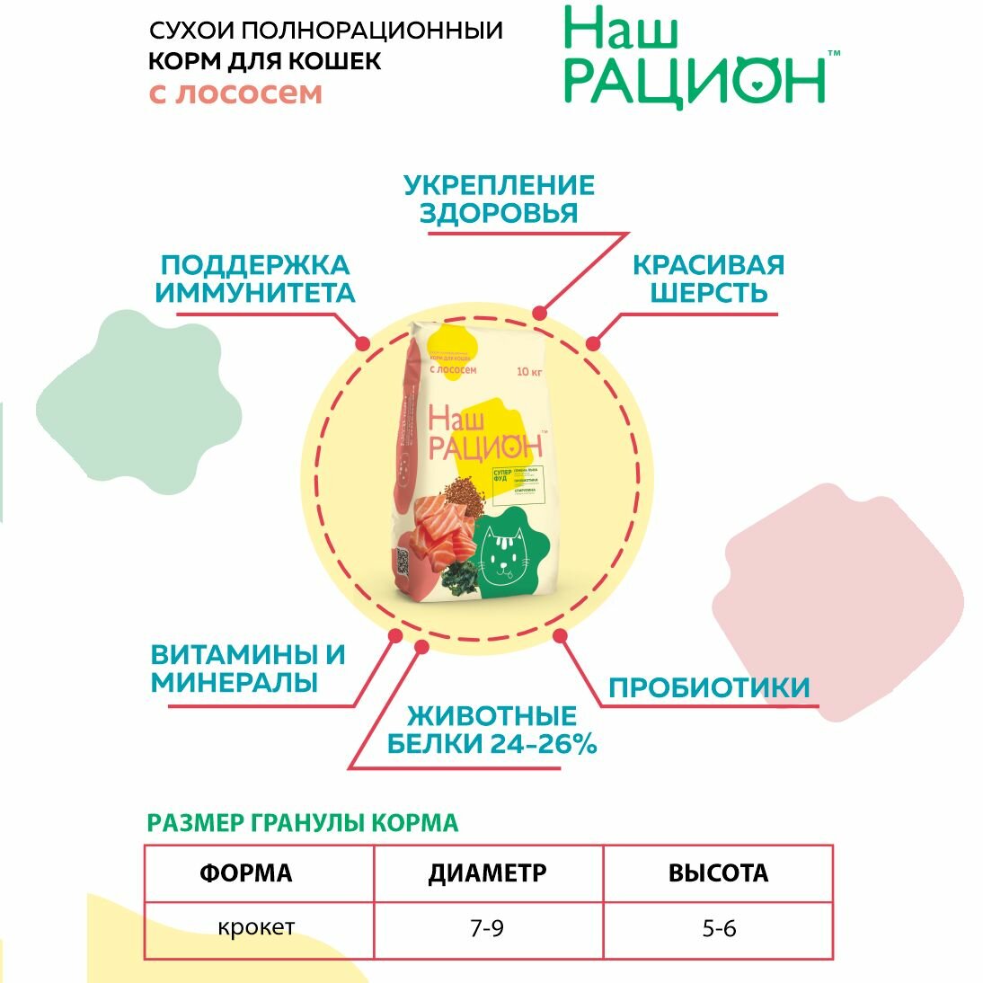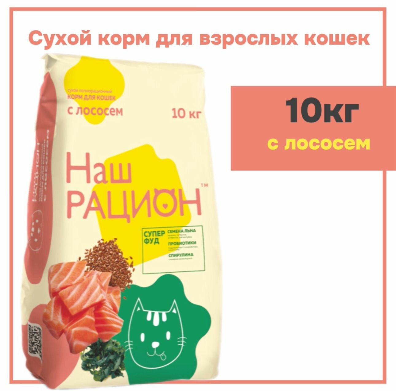 Наш Рацион сухой для кошек с Лососем 10кг информация: