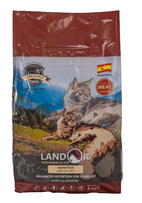 Landor Sensitive Cat сухой корм для взрослых кошек с чувствительным пищеварением Ягненок и рис, 2 кг. информация:
