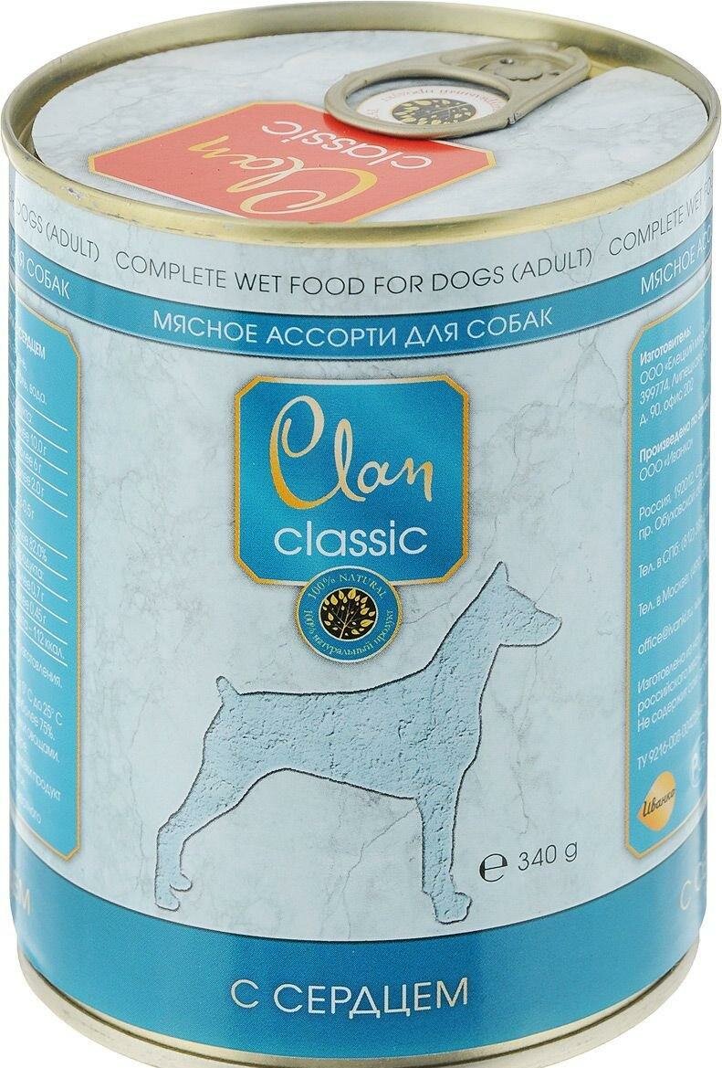 Clan Classic влажный корм для взрослых собак всех пород, мясное ассорти с сердцем 340 гр (10 шт)