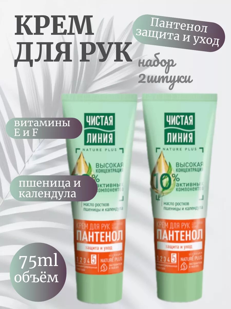 Чистая Линия крем для рук, Защита и уход с Пантенолом, 75 мл, 2 шт 440 ₽