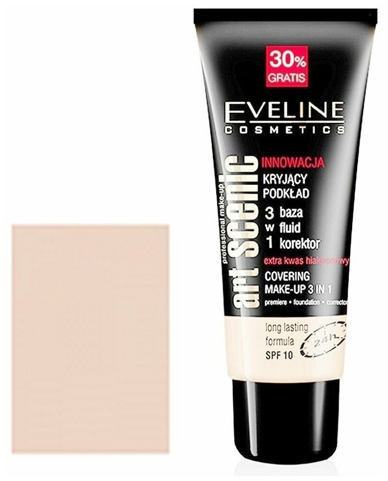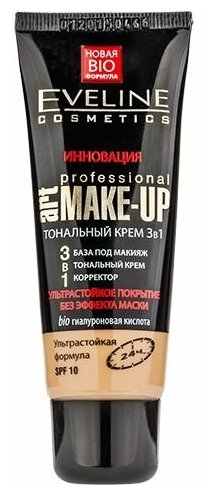 Тональный крем 3в1 EVELINE PROFESSIONAL ART MAKE-UP, SPF 10 тон светлый бежевый, 30 мл