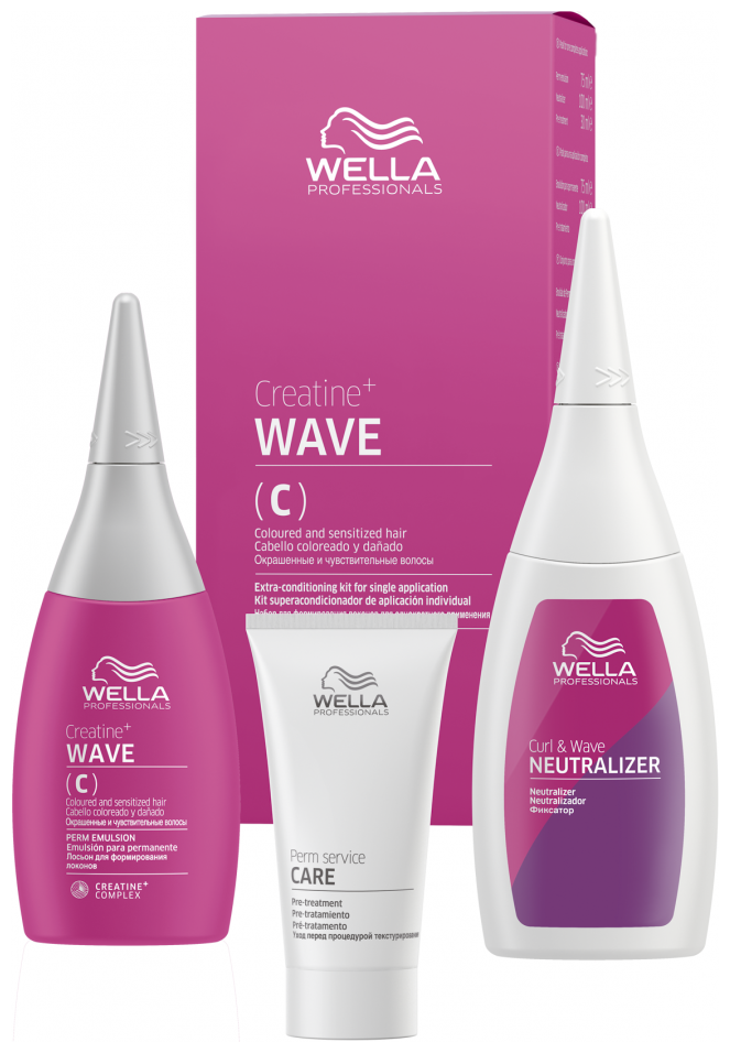 10 цен на Набор для окрашенных и чувствительных волос (лосьон 75 мл, фиксатор 100 мл, уход 30 мл) CREATINE+ WAVE