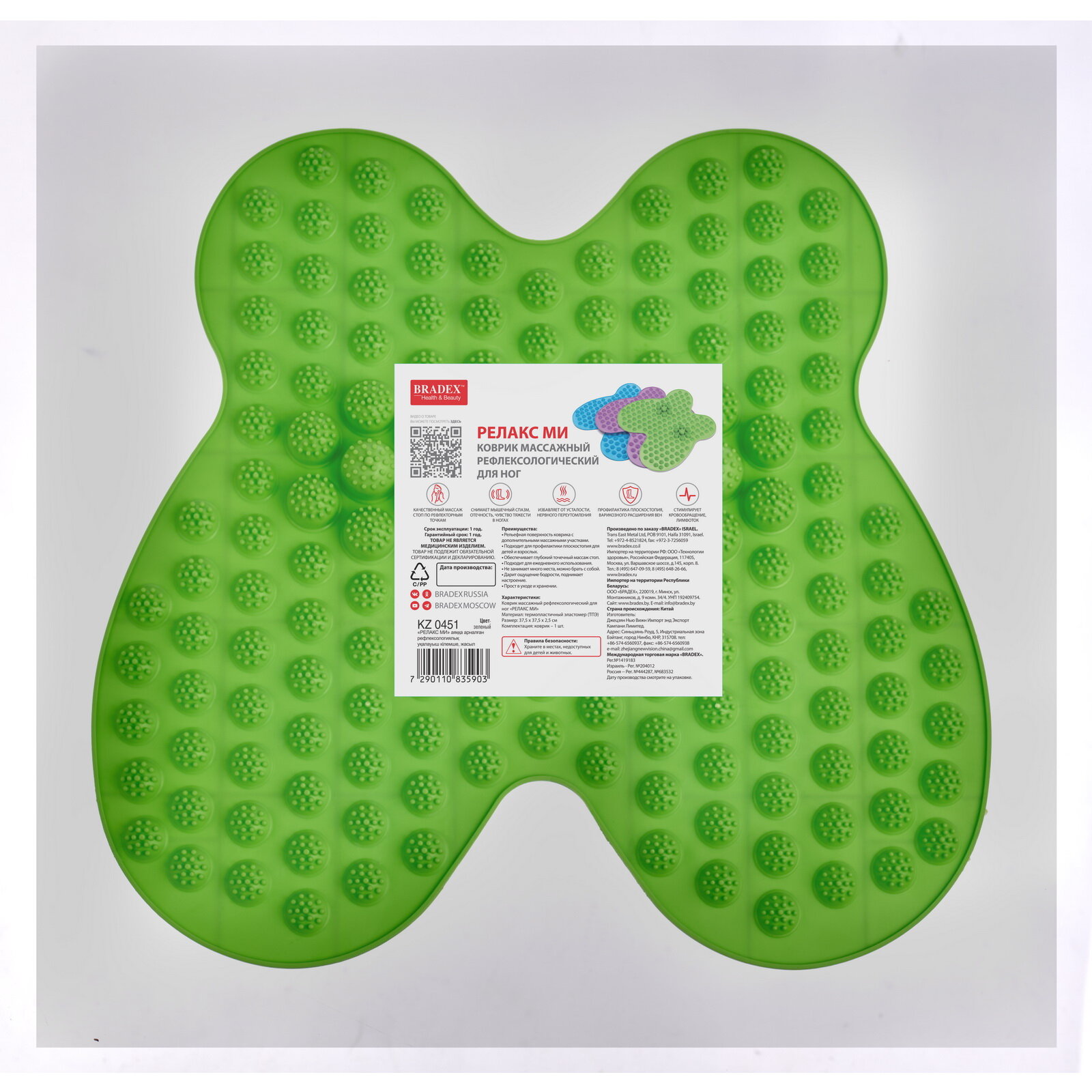 Коврик массажный рефлексологический для ног Релакс Ми, Bradex (зеленый, KZ 0451)