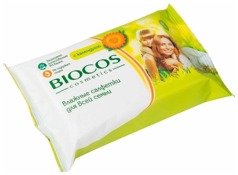 10 цен на BioCos Влажные салфетки для всей семьи с календулой, уп.60