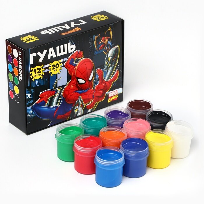 10 цен на Гуашь 12 цветов по 20 мл, Человек-паук