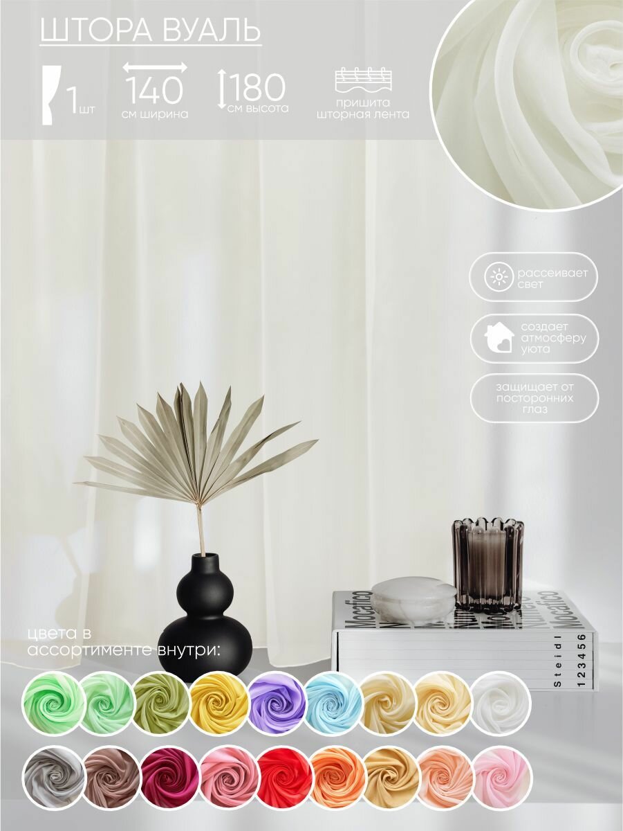 Штора вуаль однотонная 140х145 см, цвет молочный