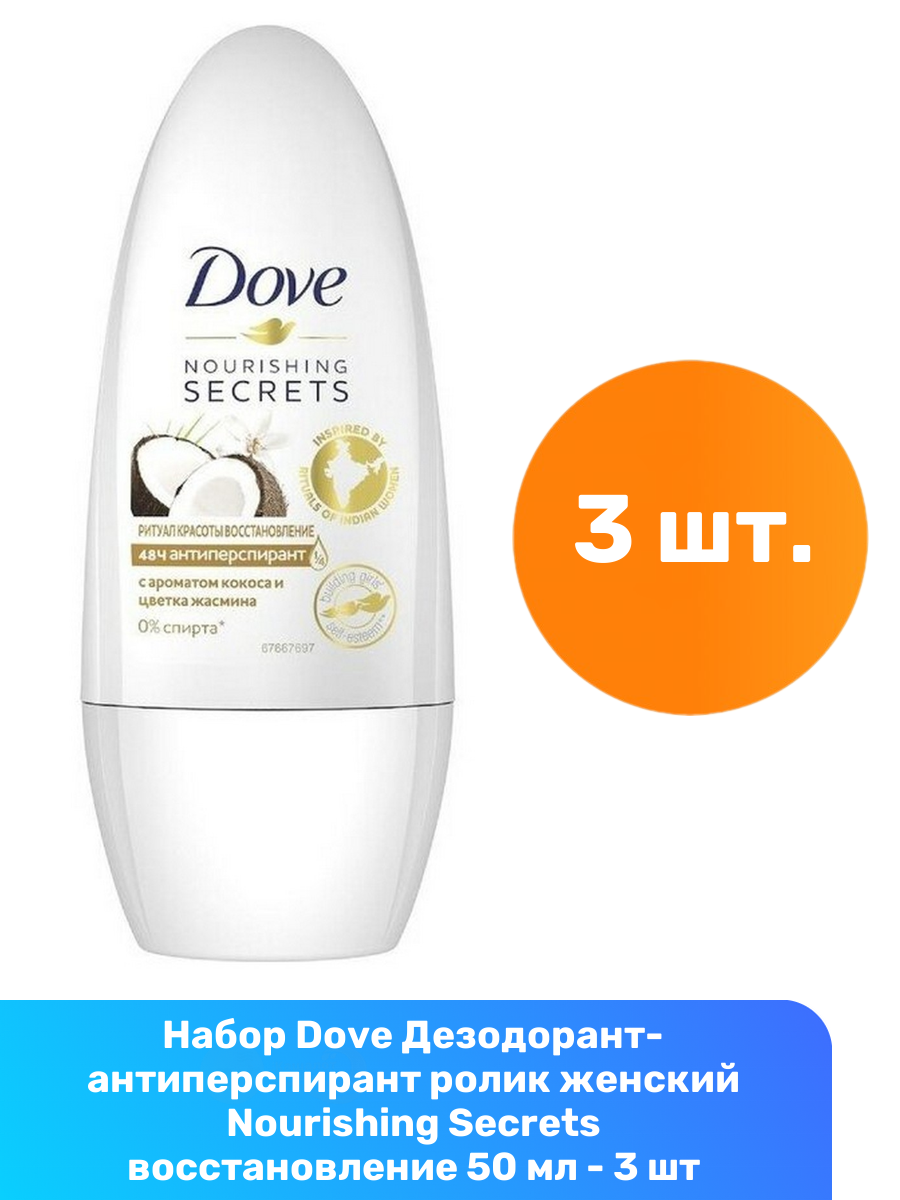 10 цен на Дезодорант шариковый женский Dove Ритуал Красоты Восстановление, 50 мл, 3 шт