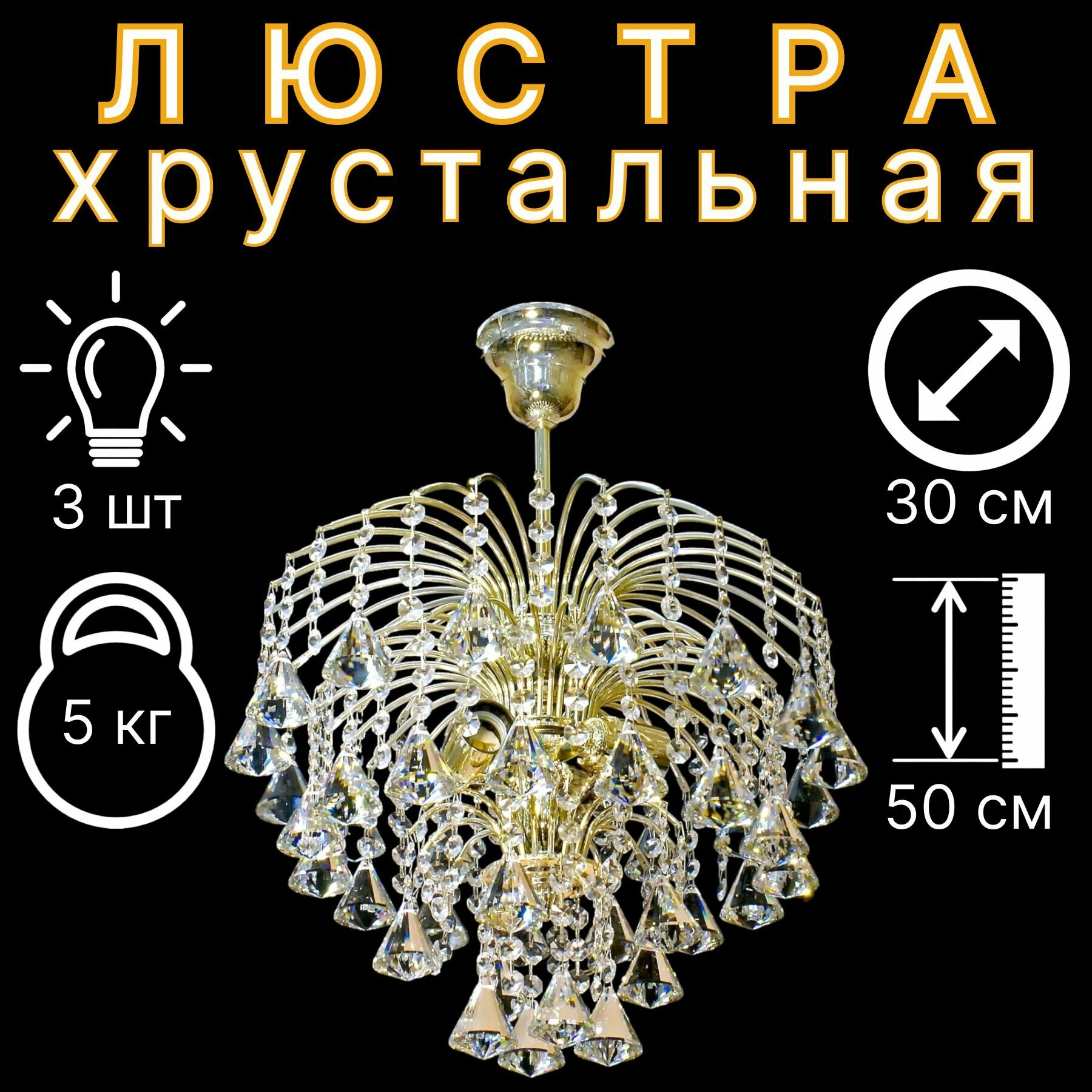 Люстра Потолочная Хрустальная "Брызги" 3 лампы/Золото информация: