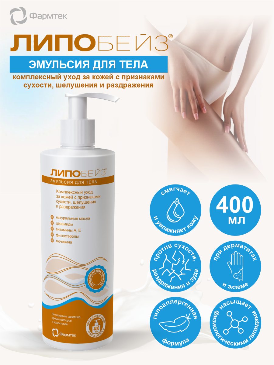 Эмульсия Липобейз для тела от шелушения сухости зуда раздражения 400 мл
