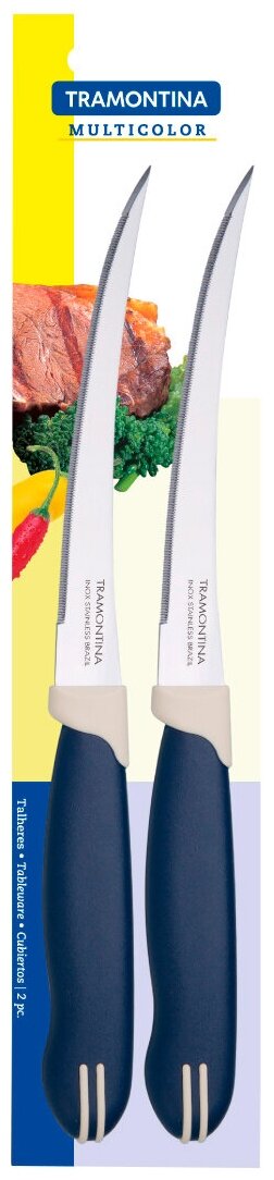 Нож Tramontina Multicolor для помидоров/цитрусовых, 12,5 см синий 2 штуки в упковке .