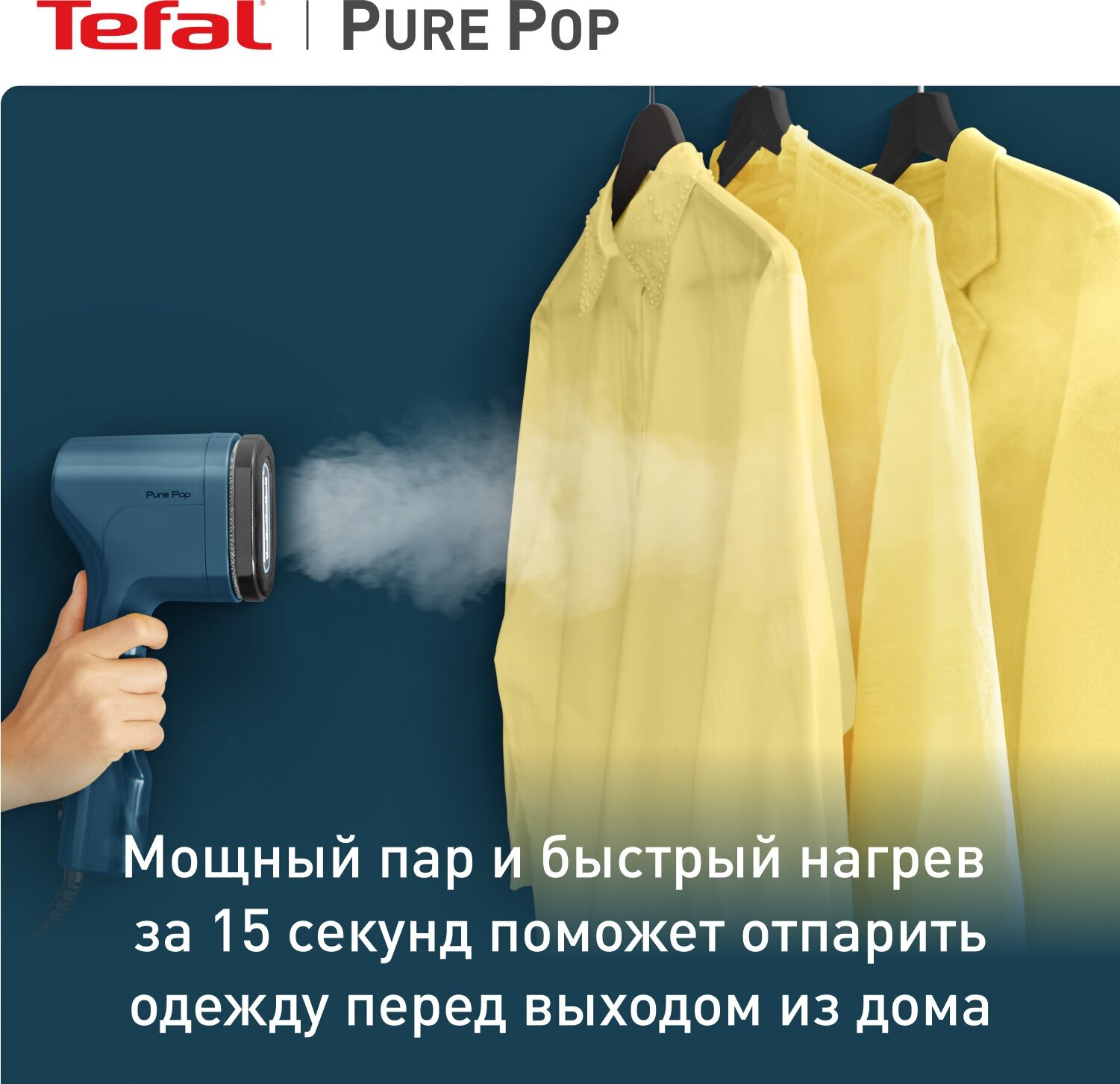 10 цен на Ручной вертикальный отпариватель Tefal Pure Pop DT2020E1 с двухсторонней насадкой для деликатных тканей, 1300 Вт, голубой