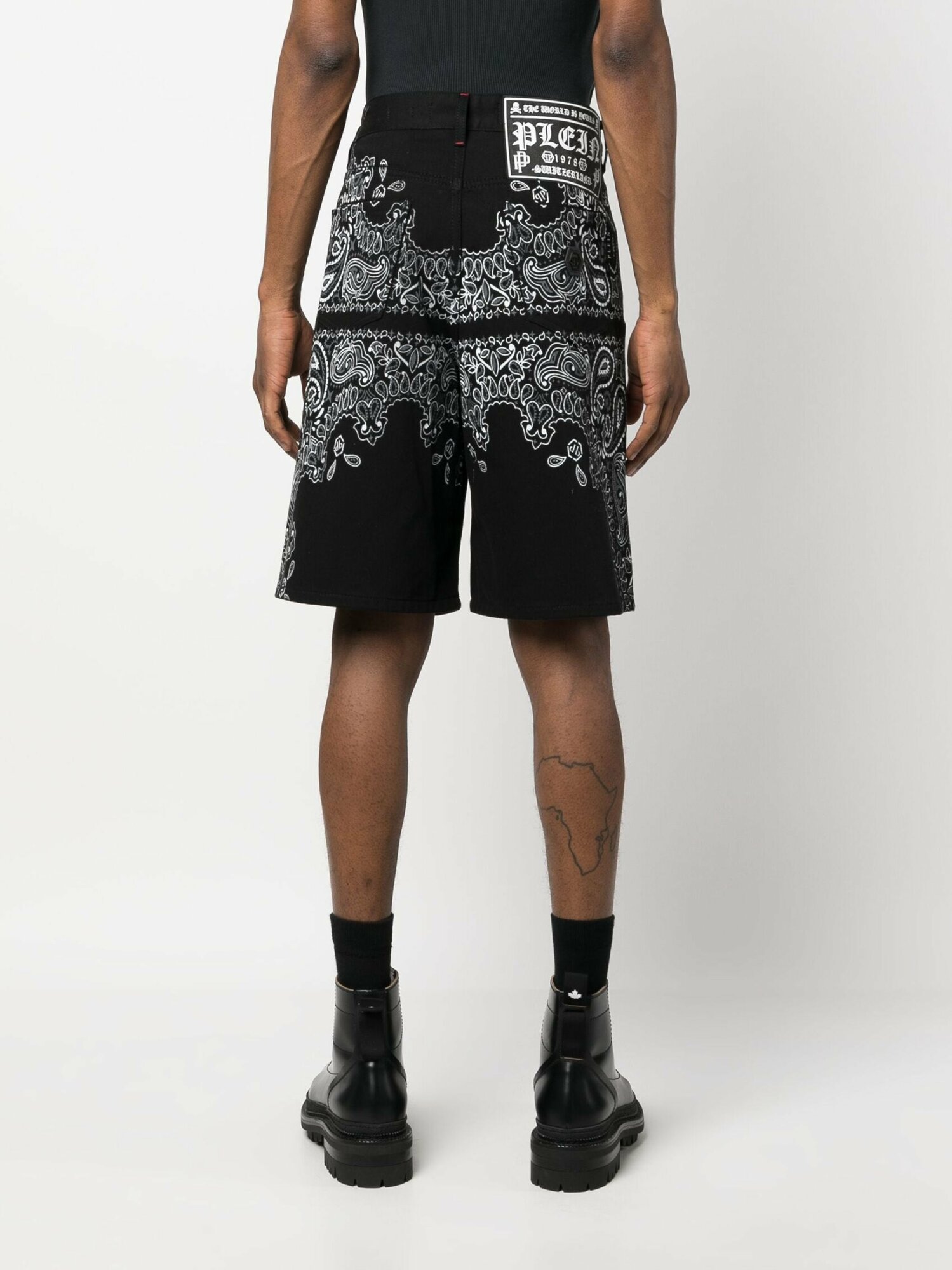Philipp Plein - джинсовые шорты-бермуды с принтом пейсли - Mужской - 31 - Черный информация: