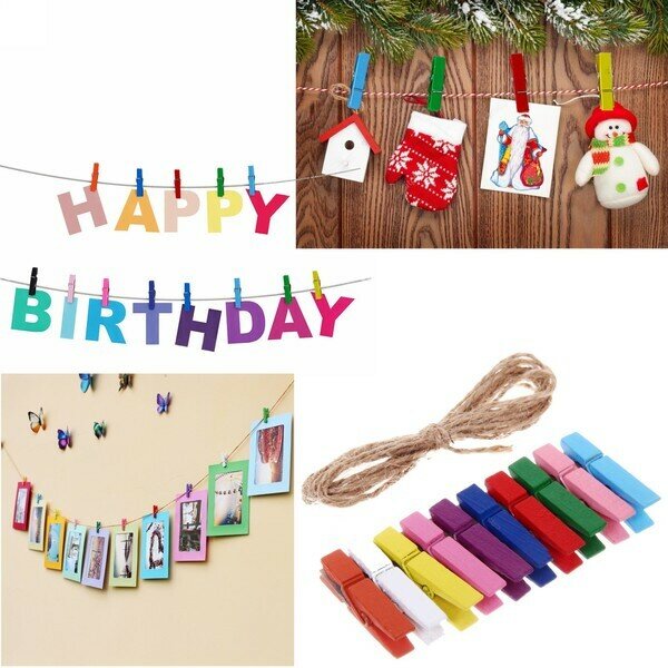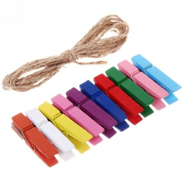 10 цен на Набор для оформления «Цветные прищепки» (10 прищепок 4,5 см, веревка 2м)