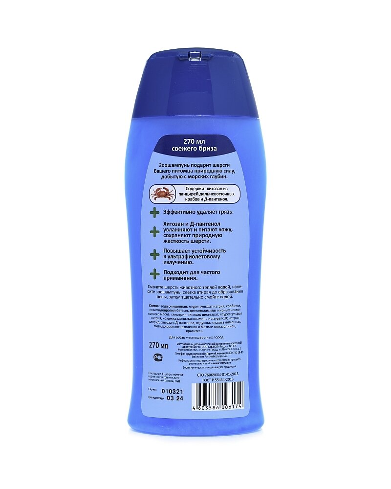 Шампунь Морской для жесткошерстных собак с хитозаном и Д-пантенолом АВЗ (270 мл) информация: