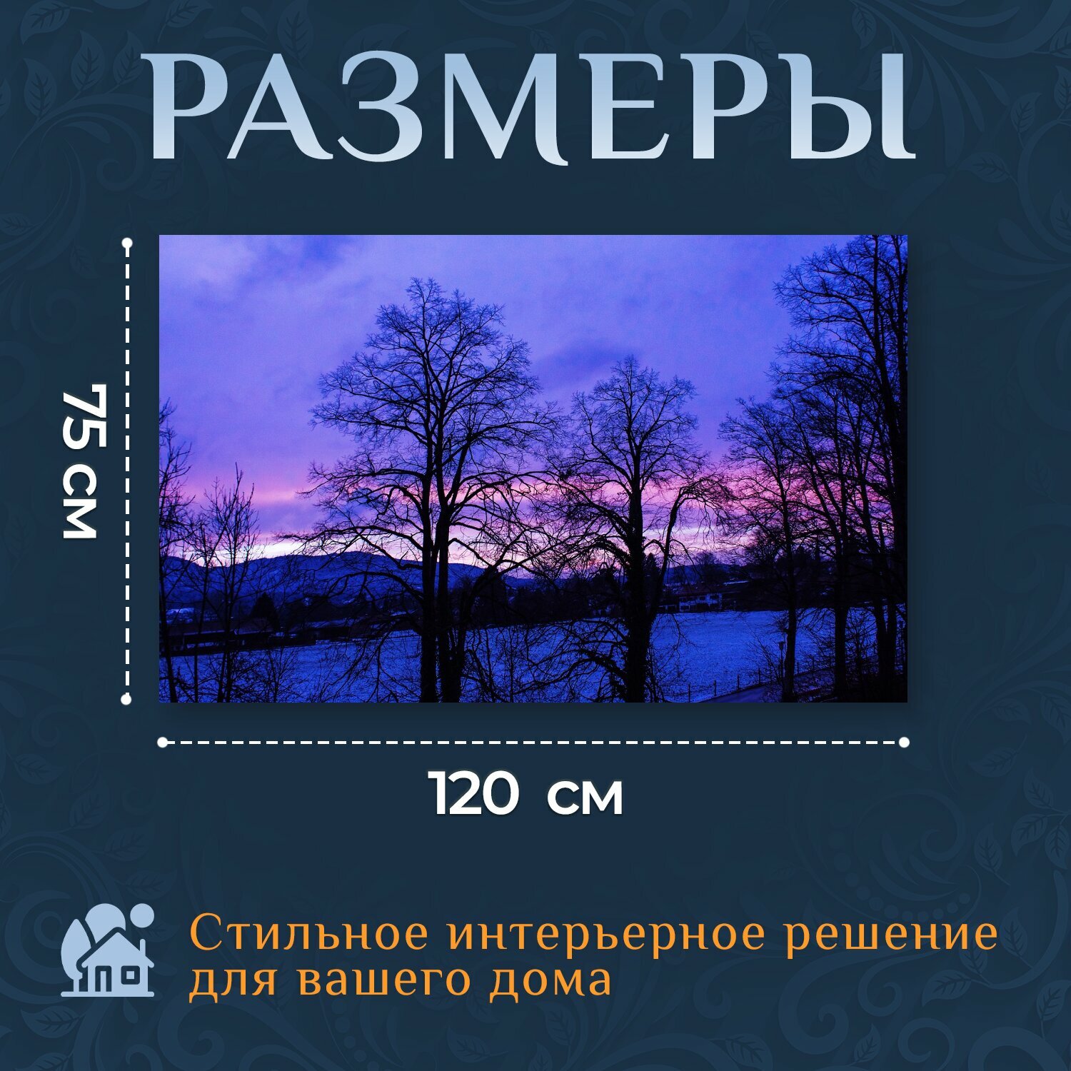Картина на холсте "Вечерняя атмосфера, заход солнца, небеса" на подрамнике 120х75 см. для интерьера информация: