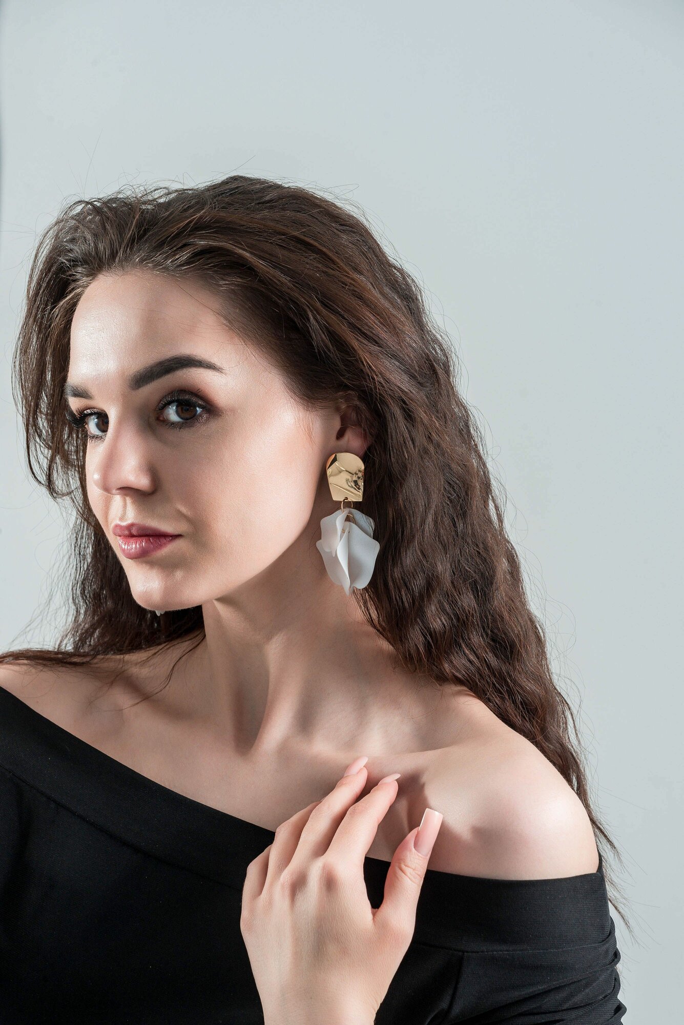Белые серьги лепестки висячие вечерние женские стильные сережки тренд 2024 информация: