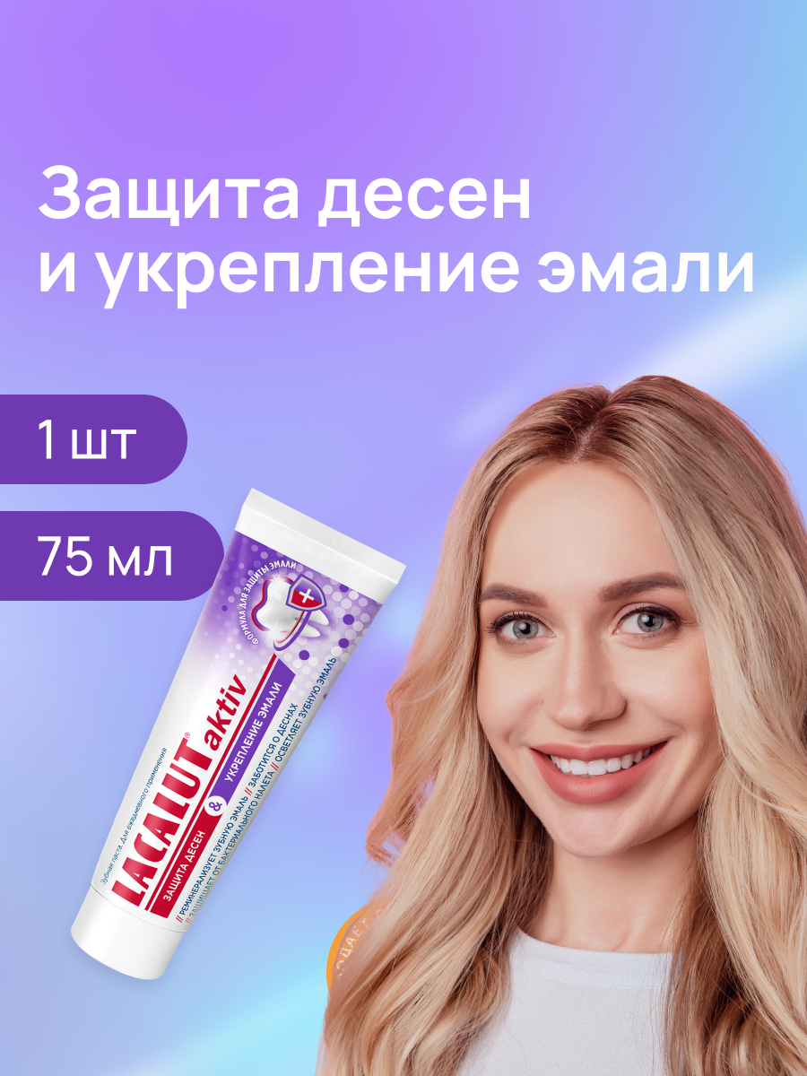 Зубная паста Lacalut Aktiv, защита десен и укрепление эмали, 75 мл, 2 штуки в упаковке 678 ₽