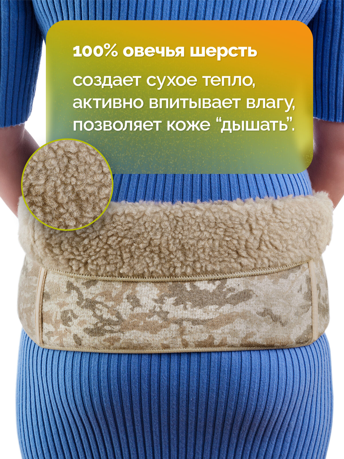 Пояс из овечьей шерсти Холти эластичный согревающий лечебный теплый бандаж на липучке (L), камуфляж 2 399 ₽