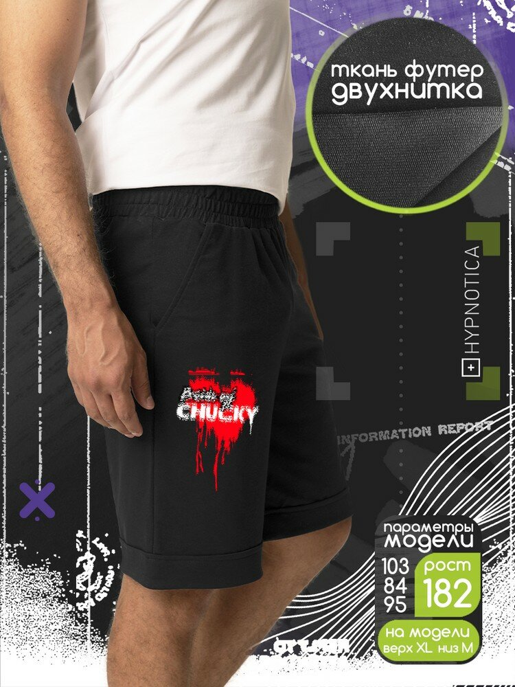 Шорты мужские с принтом фильмы Чаки ( ужасы, хоррор, вуду, кукла ) - 633 информация: