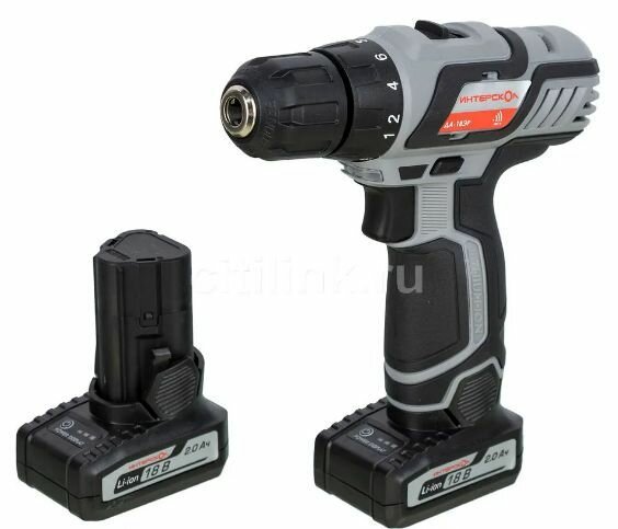 10 цен на Дрель-шуруповерт аккумуляторная ИНТЕРСКОЛ ДА-18ЭР промо (18В, 2акк*2Ач Li-ion, 35Нм, 2скорости, подсветка, 1,1кг, экокейс)