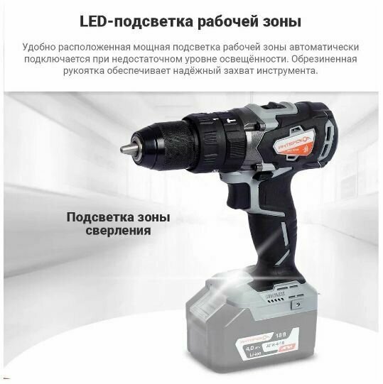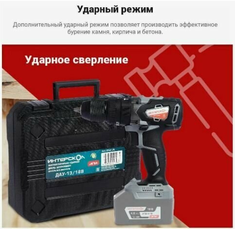 Дрель-шуруповерт аккумуляторная ИНТЕРСКОЛ ДАУ-13/18В (ударная, бесщёточный привод, Li-ion АПИ, 18В, 60Нм, без АКБ и ЗУ, кейс) информация: