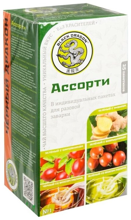 Чай ассорти №1 Black Dragon 25 пак/безопасное применение/хороший состав/без аллергии