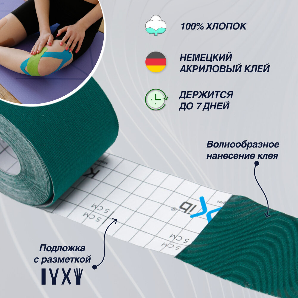 10 цен на Кинезио тейп KineXib PRO, тейпы для тела, 5м*5см, темно-зеленый