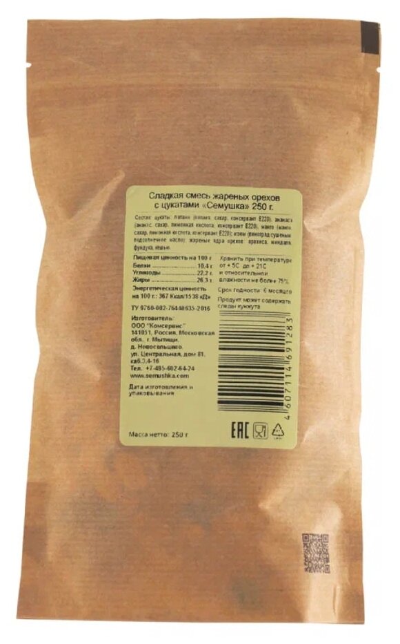 Сладкая смесь Семушка жареных орехов с цукатами 250 г информация: