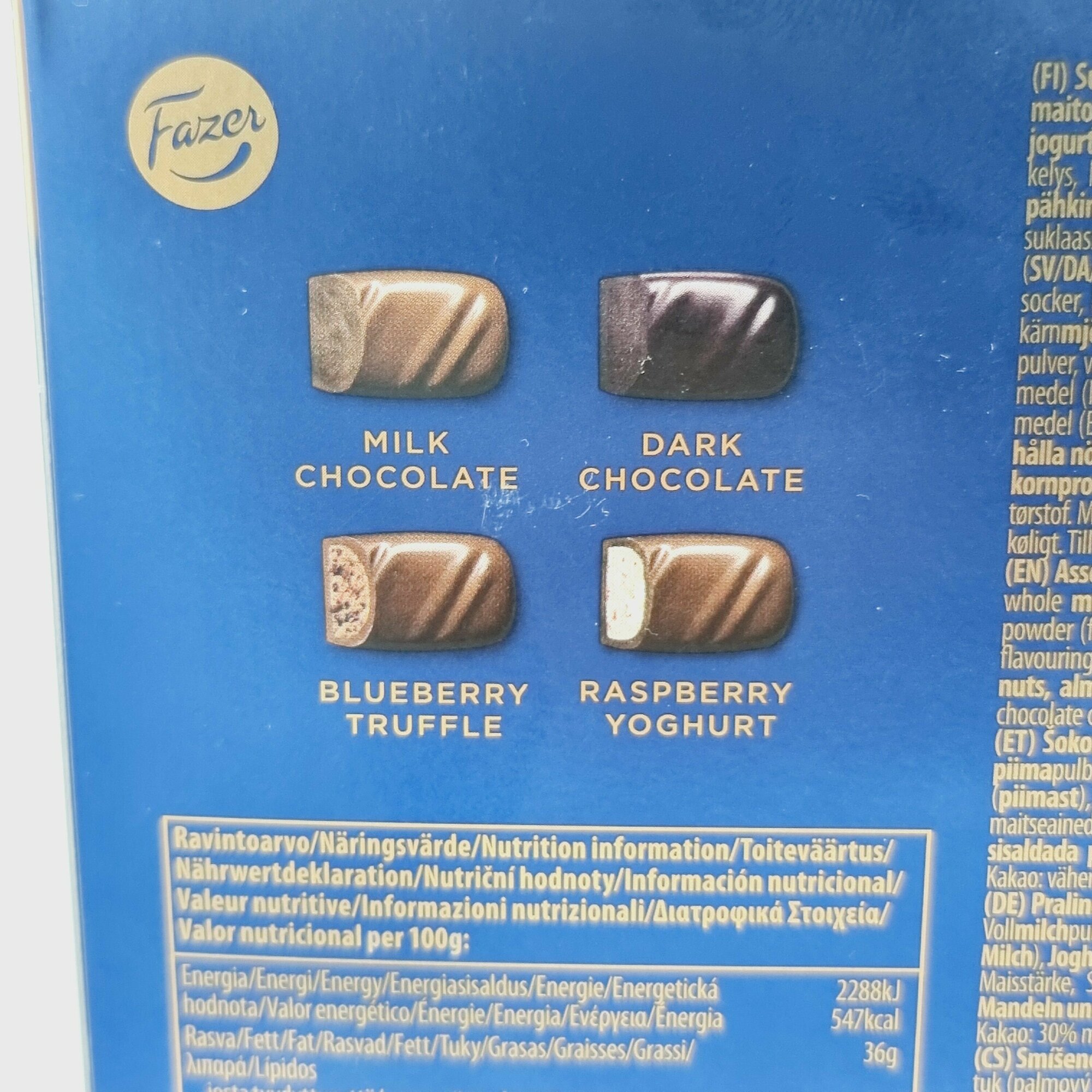 замятые коробки - Конфеты шоколадные Karl Fazer Selection ассорти (малиновый йогурт и черничный трюфель) 150 г (Из Финляндии)