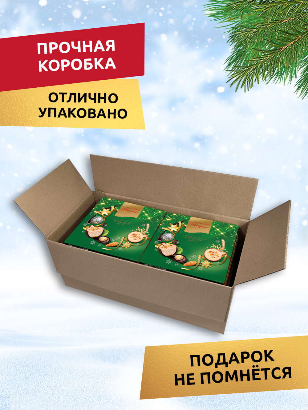 Конфеты шоколадные Стильные штучки Ореховый мусс подарочные в новогодней коробке, 3 шт по 104 г 699 ₽