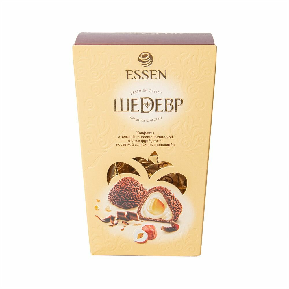 10 цен на Essen Конфеты Шедевр со сливочной начинкой, целым фундуком и тёмным шоколадом, 145 г, 3 уп