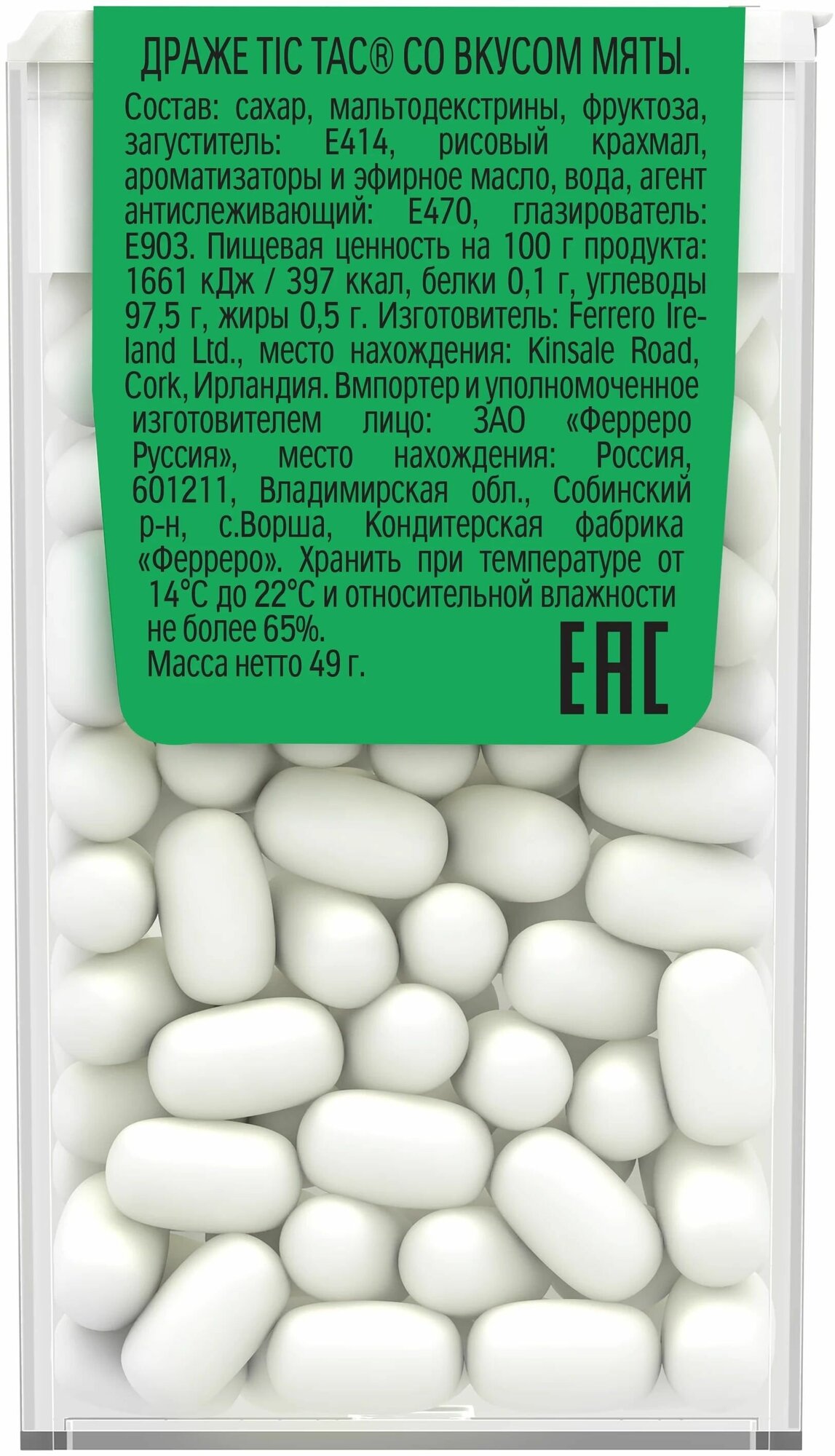 Конфеты драже Tic Tac Мята 49 гр 24 шт информация: