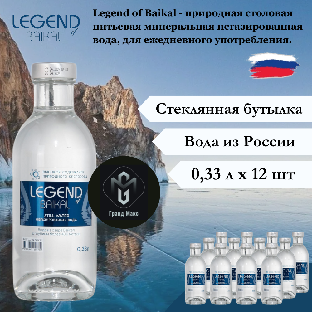 Вода питьевая Legend of Baikal (Легенда Байкала), 0,33 л х 12 бутылок, негазированная, стекло информация: