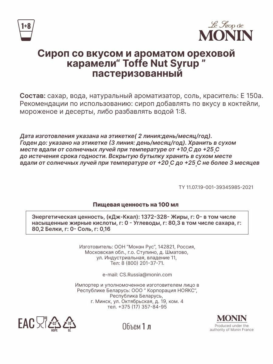 Сироп для кофе и коктейлей Ореховая Карамель , 1 литр информация: