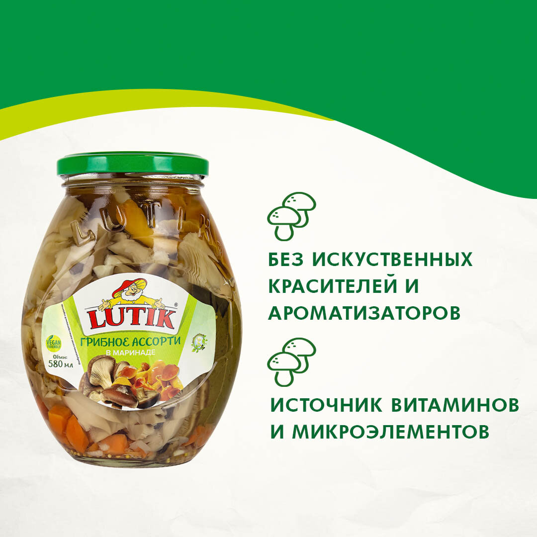 Ассорти Lutik грибное в маринаде, 580 мл