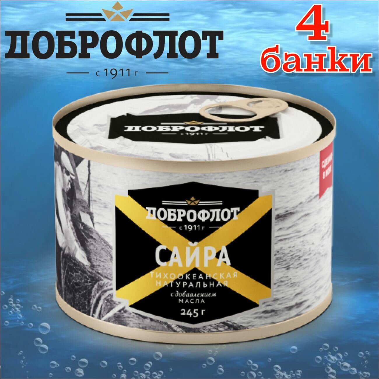 Консервы рыбные "Доброфлот" Сайра натуральная с добавлением масла ГОСТ, 4 шт по 245 г