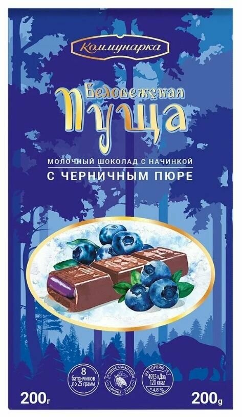 Шоколад Коммунарка "Беловежская пуща" c начинкой с черничным пюре, 8 батончиков х 25 г, 200 г, 1 упак информация: