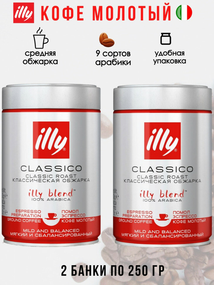 10 цен на Illy Classico 250г кофе молотый ж/б (2 банки) (900438/2)