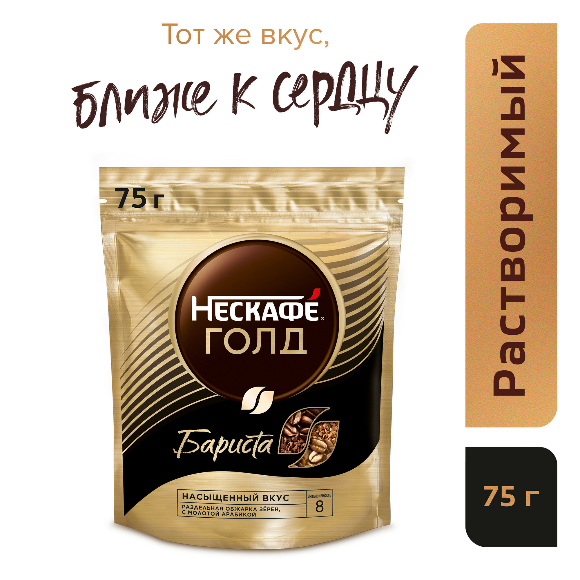 Кофе растворимый Nescafe "Gold Barista", сублимированный, с молотым, тонкий помол, мягкая упаковка, 75г