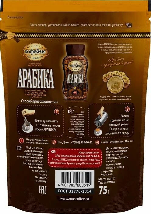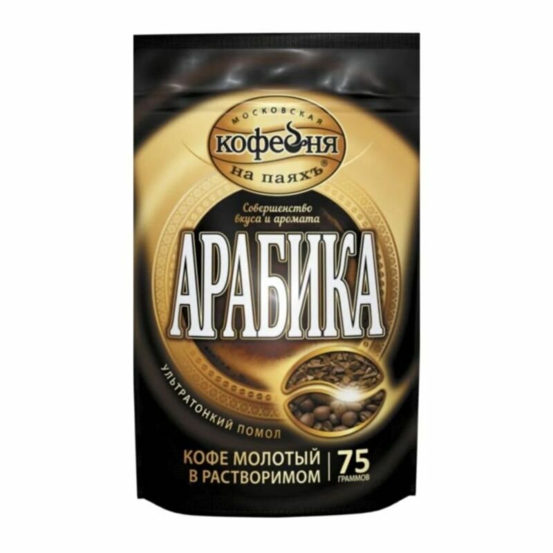 Кофе растворимый Московская кофейня на паяхъ, Арабика, сублимированный, с молотым, 75 г информация: