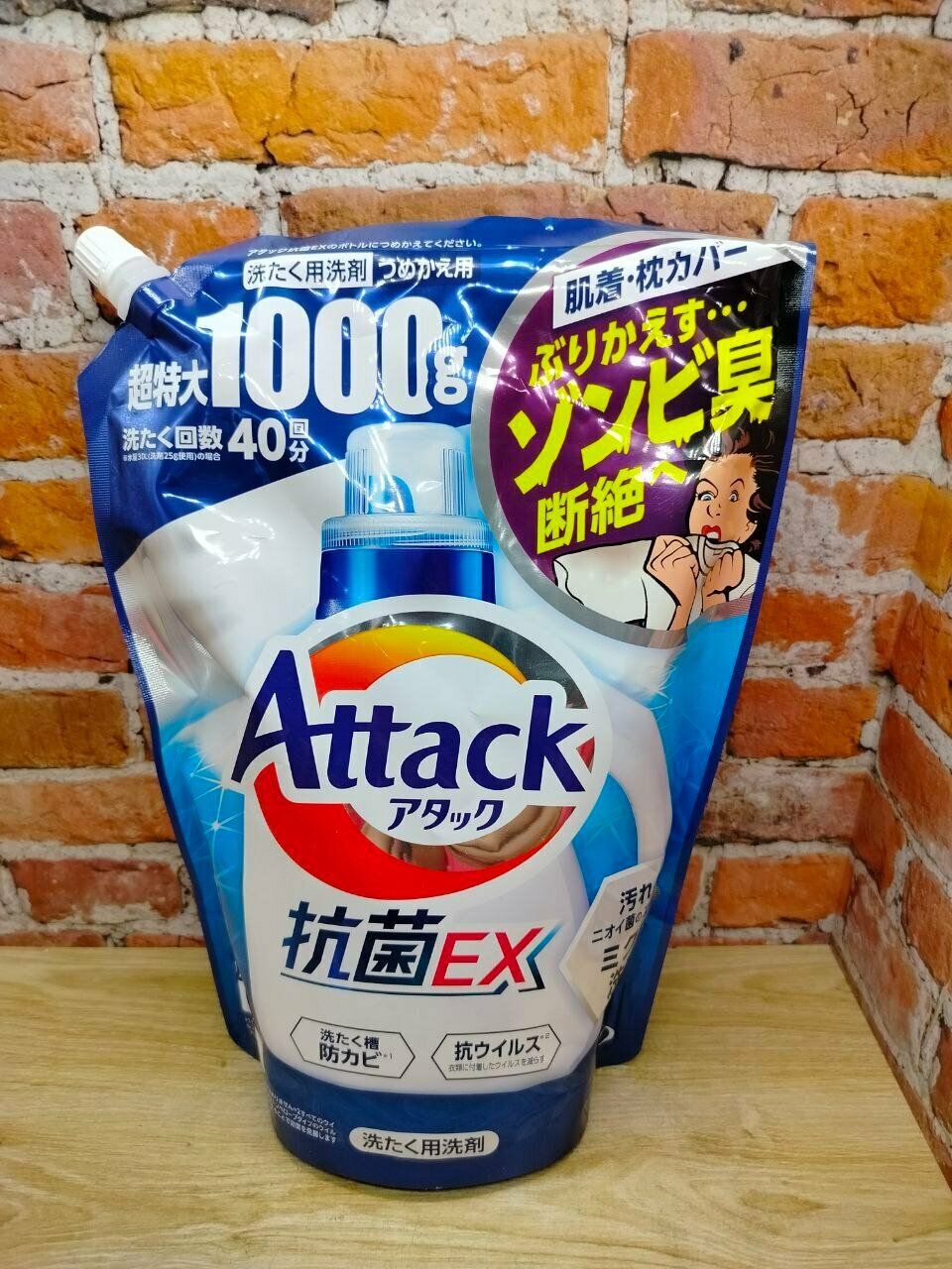 KAO Attack Жидкое средство для стирки белья с антибактериальным эффектом и сушки в помещении сменная упаковка 1000 гр 1 150 ₽