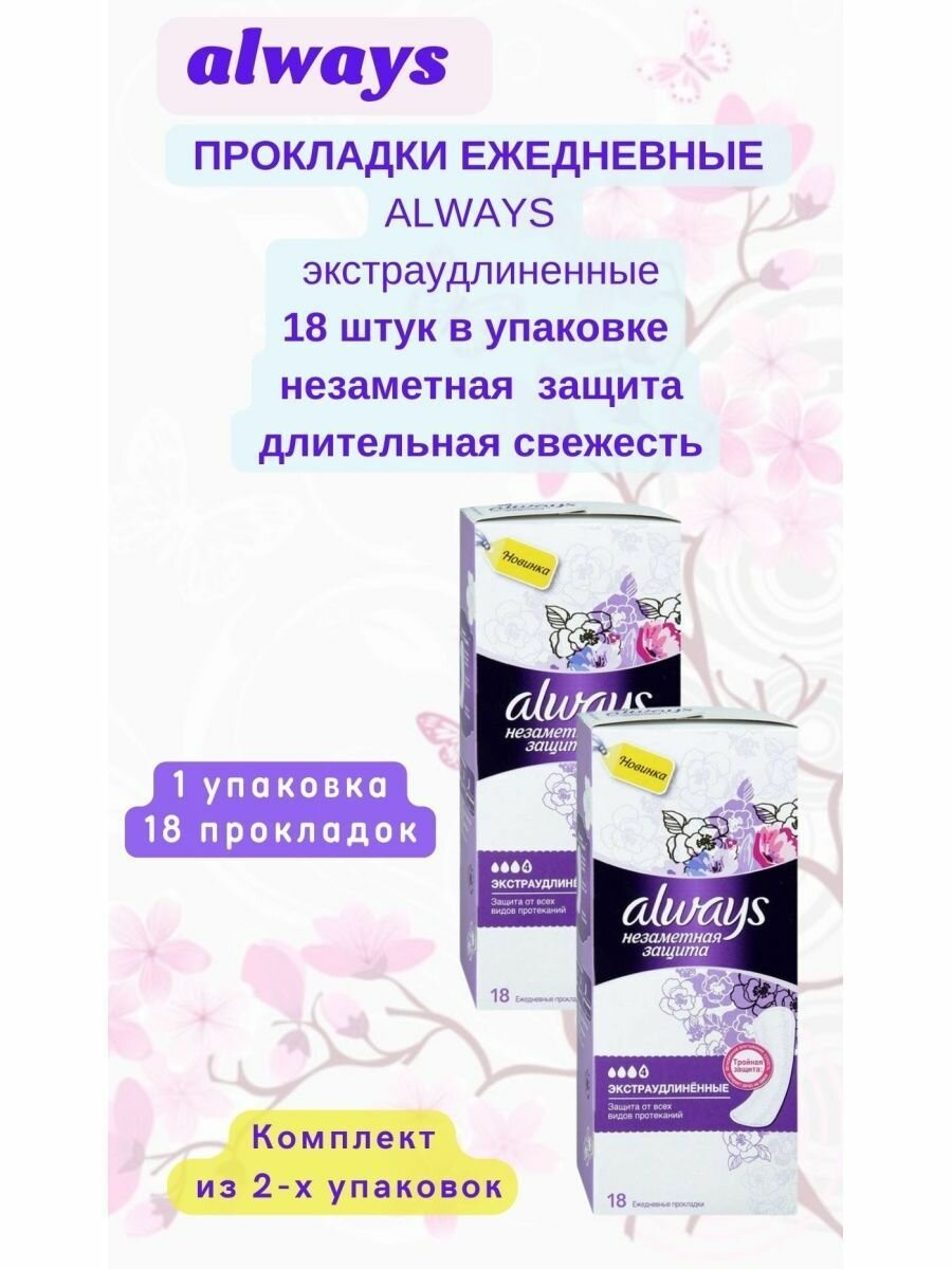 Always Прокладки ежедневные Экстра удлинённые 18шт