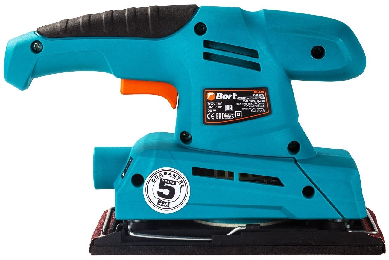 Bort Машина шлифовальная вибрационная BS-240 {90x187 мм: 200 Вт: 12000 об/мин: 1,6 кг: 230 В: 60 Гц: 1,62 (1,62) кг: набор аксессуаров 3 шт: