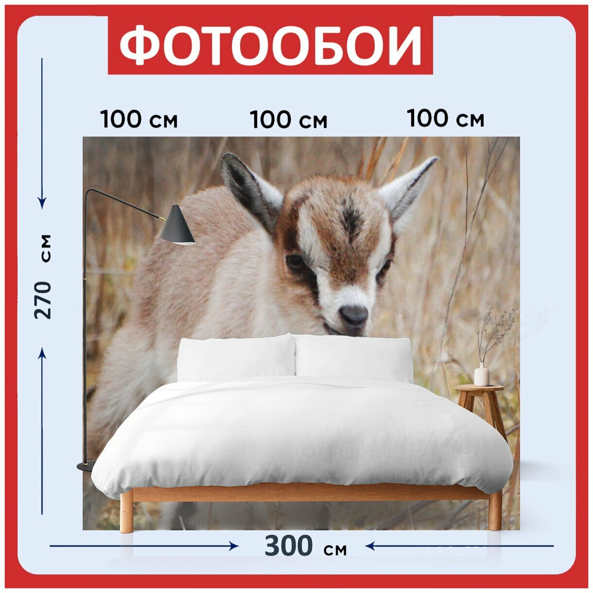 Фотообои ударопрочные моющиеся "Козел, карликовая коза, западная африка" 300x270 см. флизелиновые на стену информация: