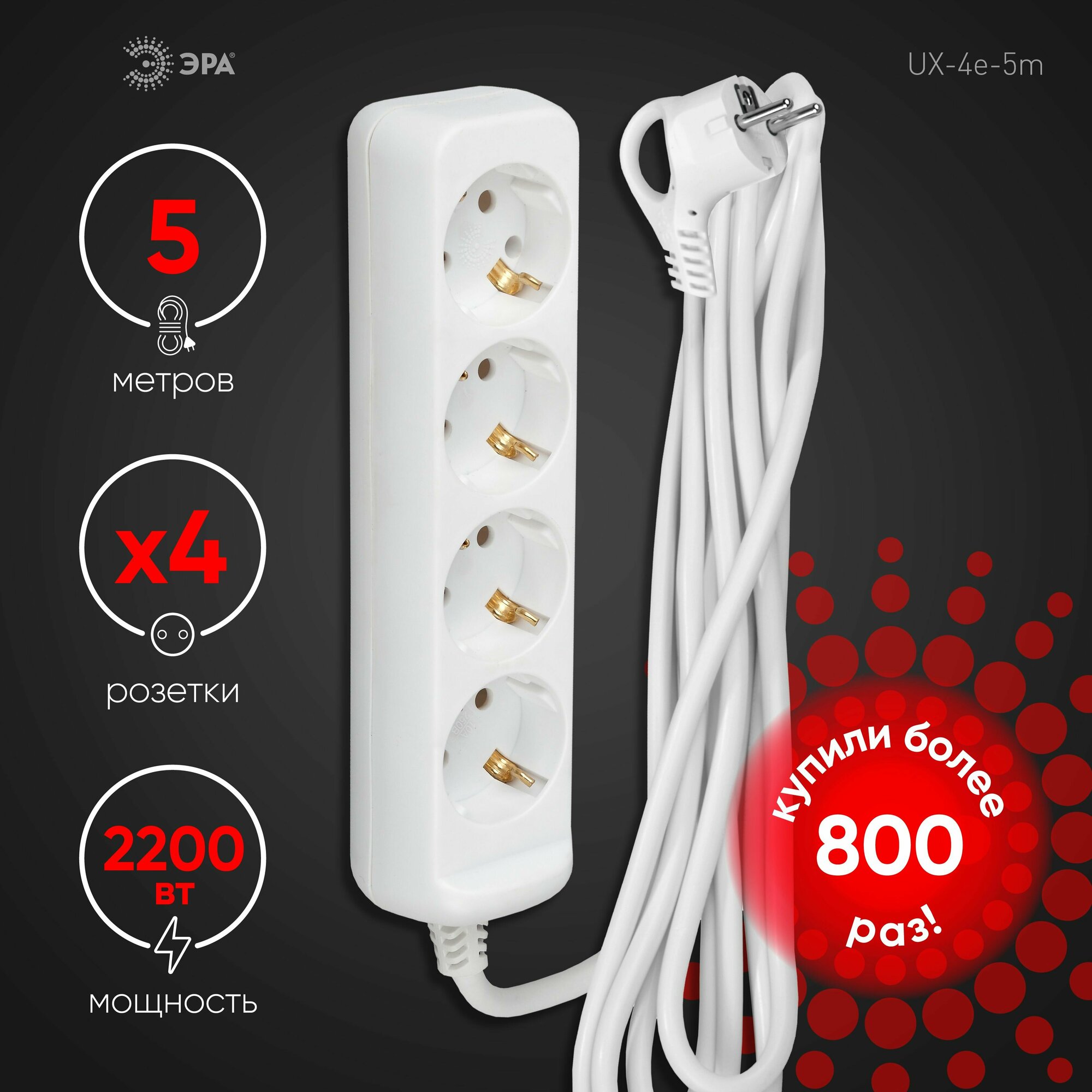 10 цен на ЭРА UX-4e-5m ЭРА Удлин-ль c заземл, 3х0,75мм2, ПВС, 4гн, 5м (5/10/360)