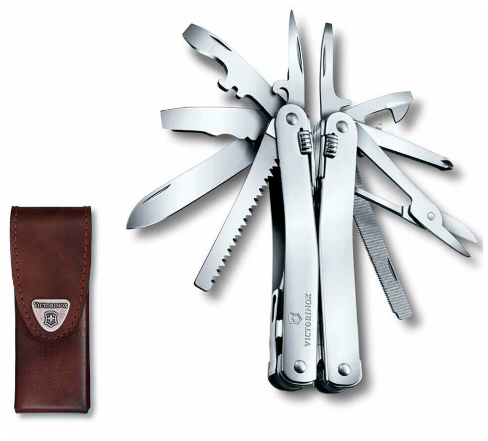 Мультитул VICTORINOX SwissTool Spirit X, 105 мм, 26 функций, в кожаном чехле