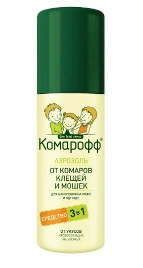 Аэрозоль Комарофф от комаров, клещей и мошек 3 в 1, 100 мл