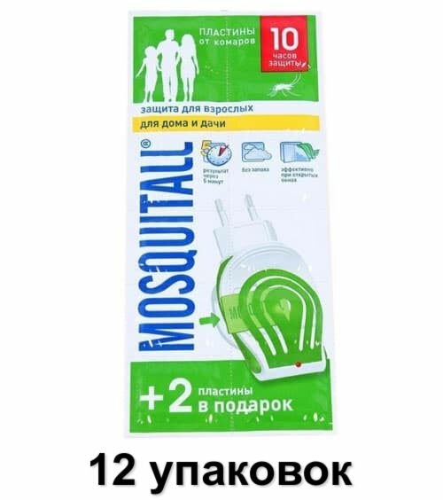 Mosquitall/ Пластины Защита для всей семьи от комаров, 10+2 шт, 12 уп информация: